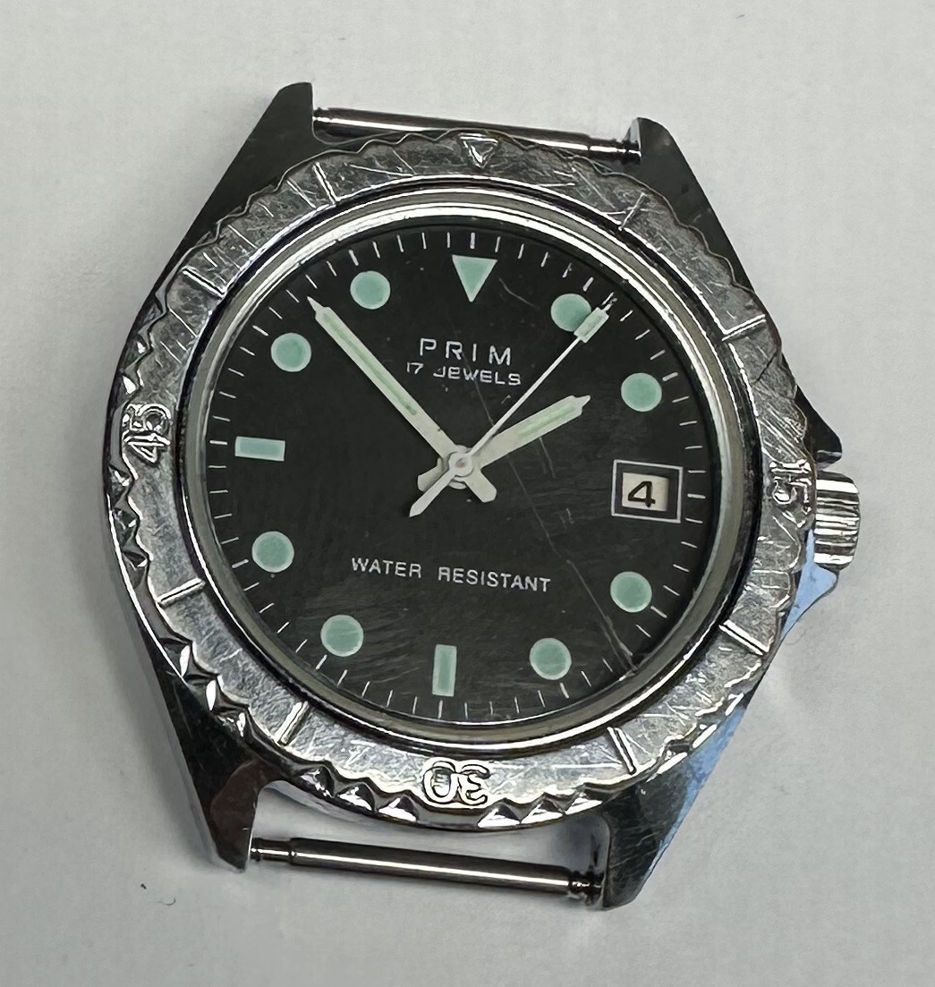 Prim Sport III, typ 64 649 1, strojček cal 64, priemer púzdra 38 mm, funkčné, presnosť a dĺžka chodu nesledované, pôvodný stav viď. fotografie.