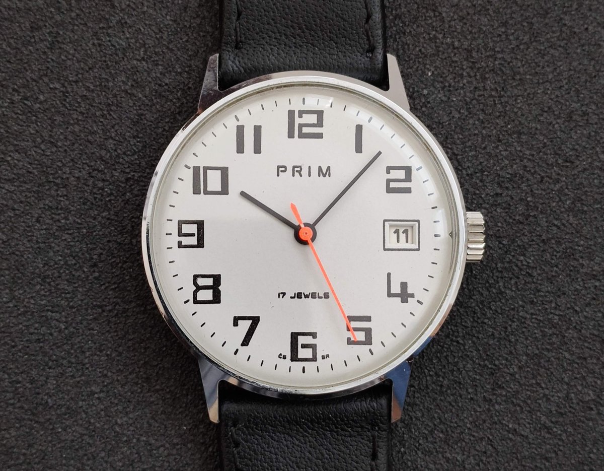 Prodám hodinky PRIM Tabule. Včetně nového koženého řemínku. Hodinky vypadají jako nové, nikde nemají poškozené chromování pouzdra, mají krásný zachovalý ciferník i ručky, oranžová vteřinovka je krásně sytá a není vybledlá. Hodinky jsou funkční, jedná se o mechanické hodinky cca z 80. let. Platba na bankovní účet. Zaslání přes Zásilkovnu na výdejní místo. Díky za zhlédnutí.