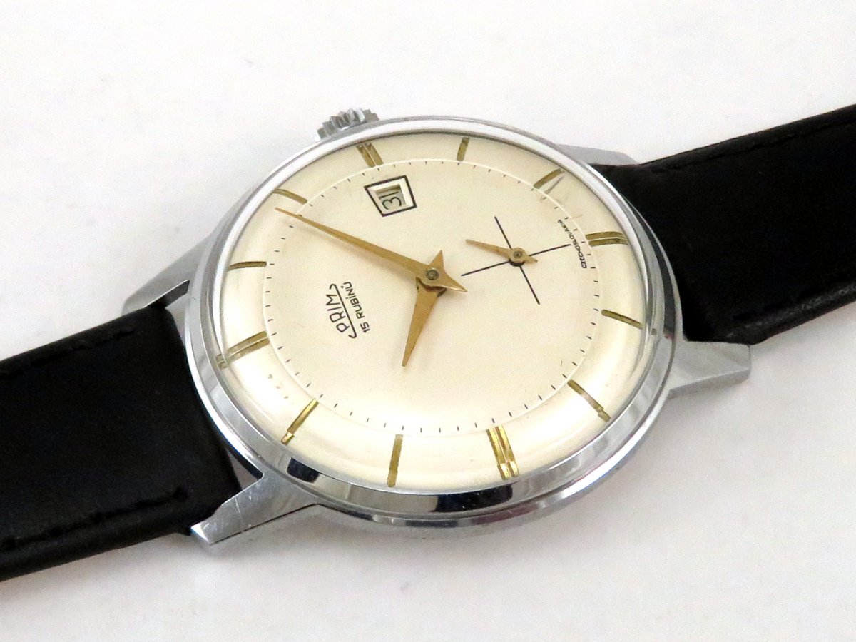 Hodinky PRIM "Traktor Datumatic". Typ 52 078 1 z první poloviny 60. let.