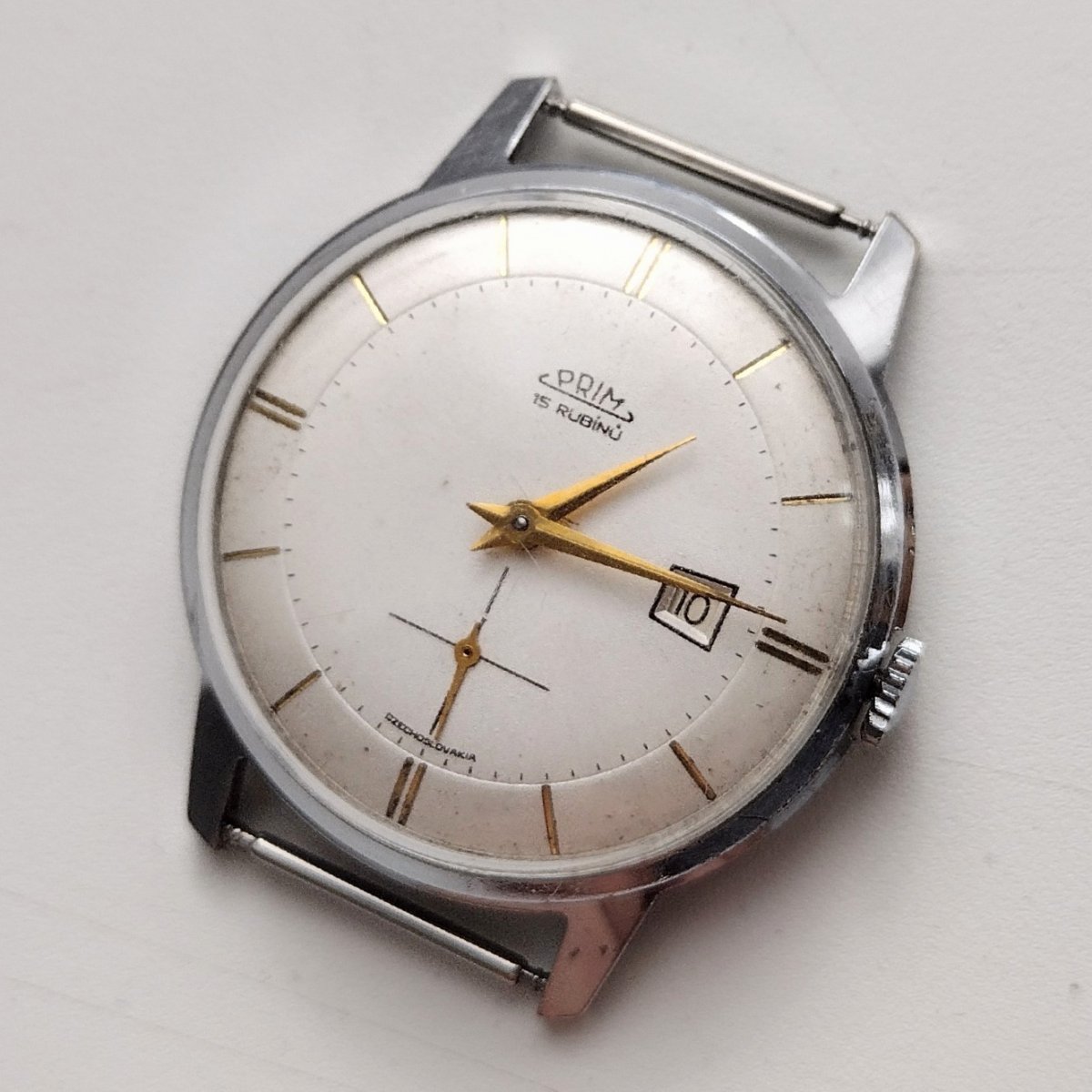 Zachovalé hodinky Prim traktor. Lehké stopy používání, chod bez výrazné odchylky. Nový stylový řemen