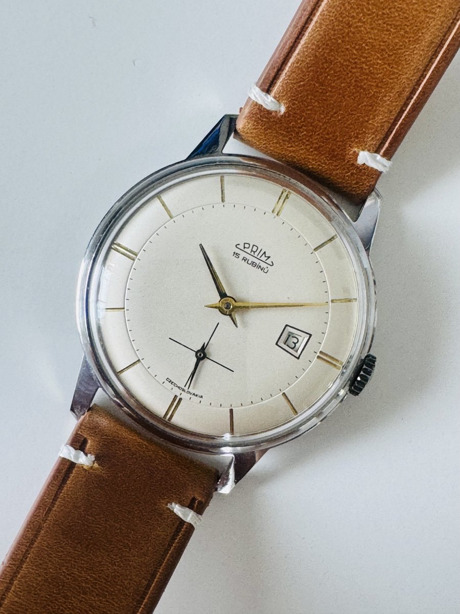 Nabízím hodinky PRIM Traktor v TOP stavu bez jediného škrábanečku. NOS číselník originál Prim, žádná novovýroba/Polsko. Hodinky osazeny pouzdrem z nerezové oceli 316L. Strojek TYP 0121. Na zadní straně dýnko z nerezové oceli 316L s průhledem na strojek. Prodej z důvodu redukce sbírky. Původní cena 15.000Kč.
