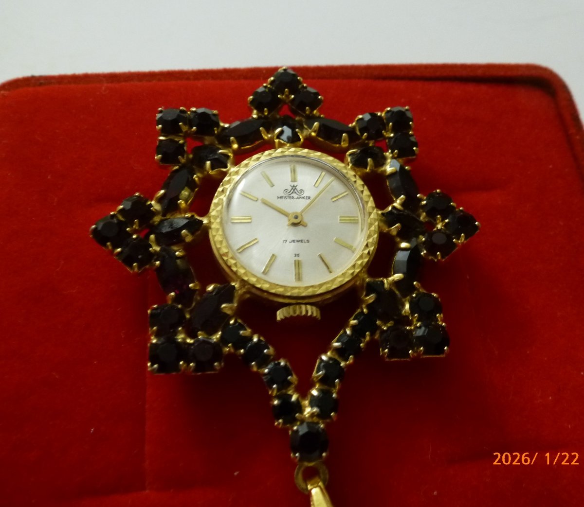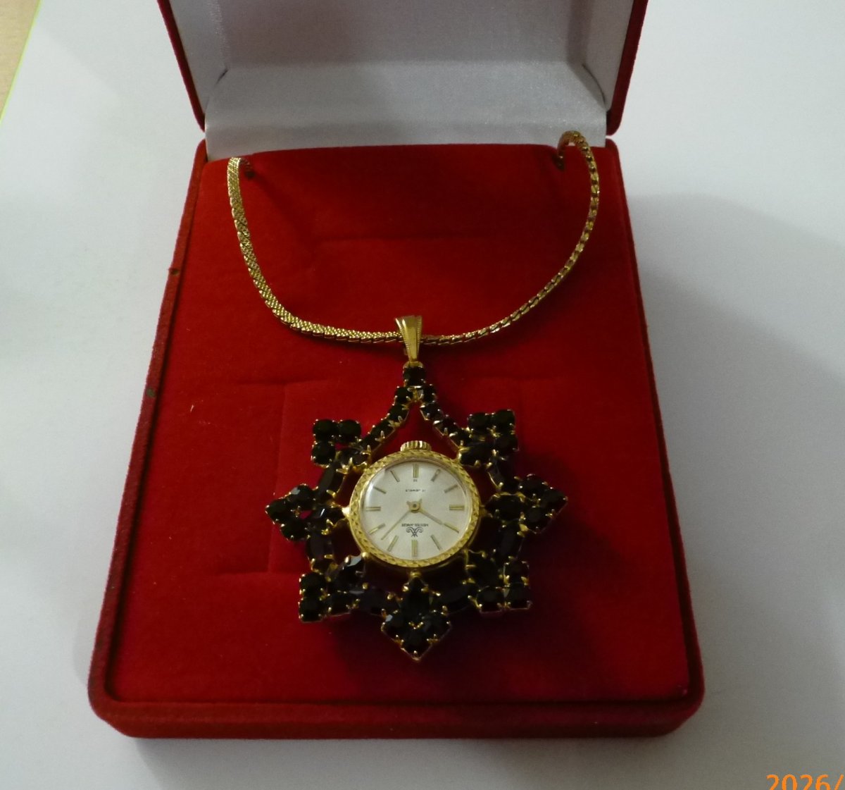 Príveskové hodinky MEISTER ANKER s českým granátom s retiazkou v krabičke. Plne funkčné.