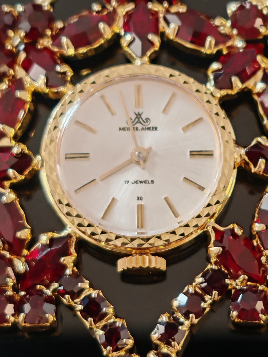 Prim vývozní - Meister-Anker kalibr 80, zlacené pouzdro, velikost pouzdra 40X43mm, 17 Jewels, typ 80 004 3, 1971, TOP STAV!!!, původní originální dobový zlacený řetízek, stav dle fotek.