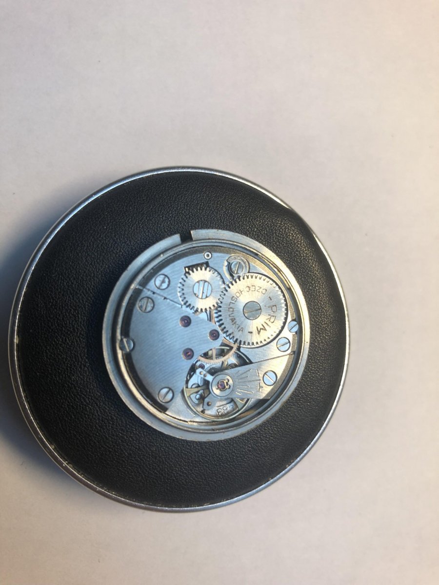 strojek je po servisu hodinářem vyčištěn, seřízen a promazán