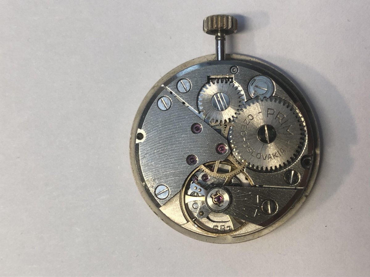 Prodám funkční strojek PRIM kalibr 68.3 s číselníkem sunburst