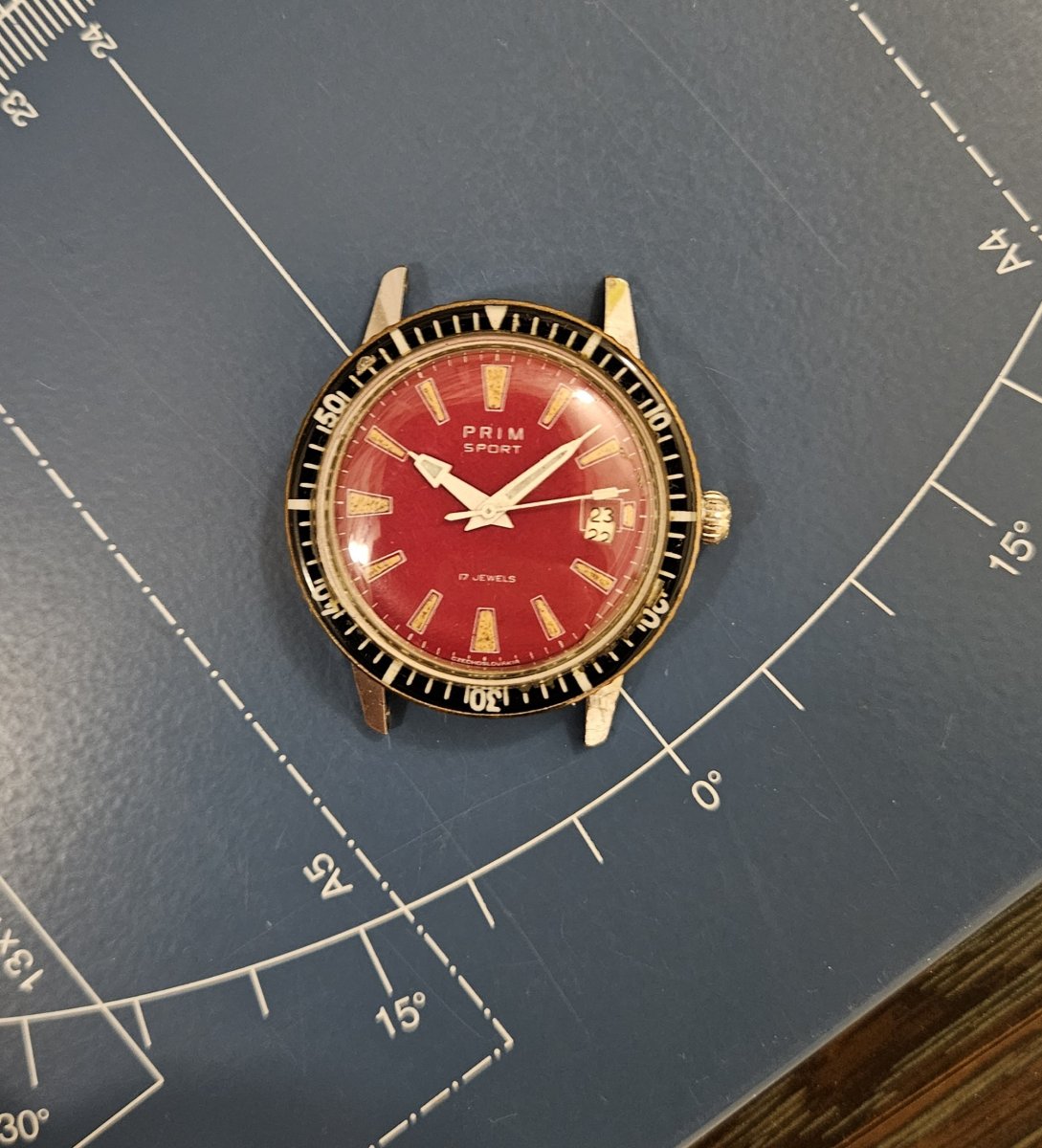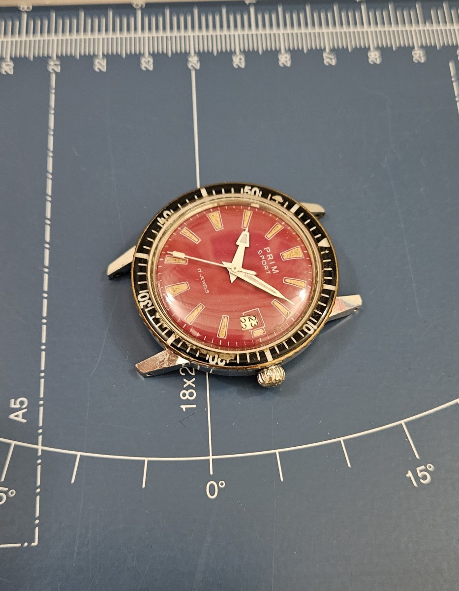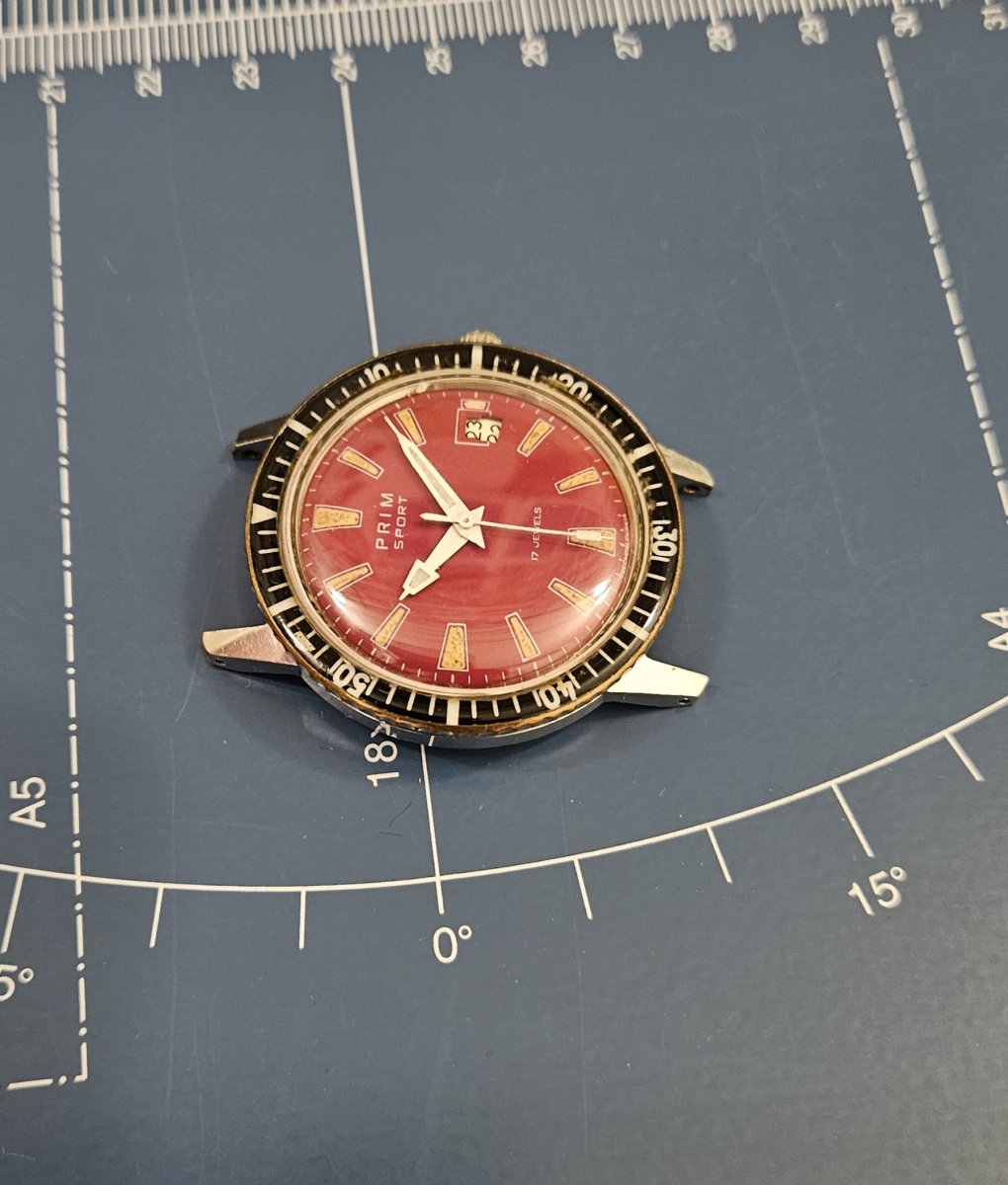 Ps1 vzácné, červené, vše originál! Chyboražba číselníku- viz datumové okénko, číselník bez jakýchkoliv úprav. Jdoucí, luneta se otáčí, vzácné bílé ručky pouzdro ve velmi slušném stavu. Sklo má malou prasklinku