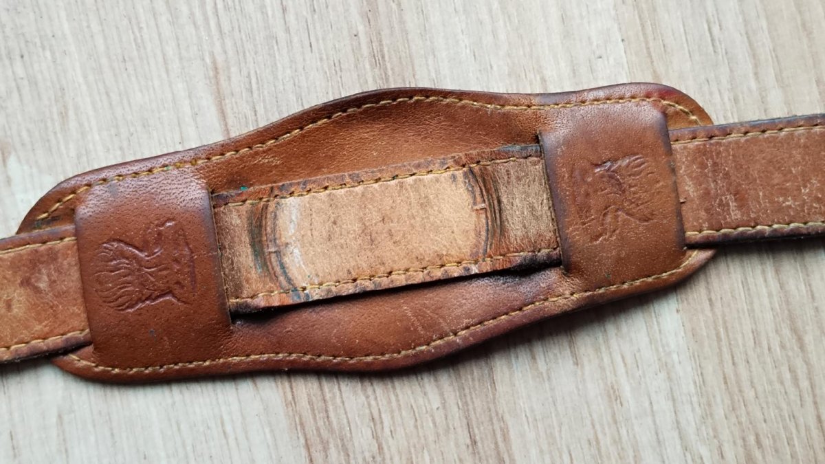 Řemínek Pohraničář nečištěno ,Stav viz foto.Hodinky jsou vyřazené z mé osobní sbírky,zboží je použito a tudíž bez záruky.Kupujete to co je na fotu.Snažil jsem se to nafotit v realnem stavu-viz foto.Odesílém řádně zabaleno a pojištěné.Poštuvné dle ceníku ČP.ZÁSILKOVNA.