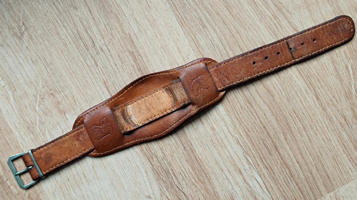Řemínek Pohraničář nečištěno ,Stav viz foto.Hodinky jsou vyřazené z mé osobní sbírky,zboží je použito a tudíž bez záruky.Kupujete to co je na fotu.Snažil jsem se to nafotit v realnem stavu-viz foto.Odesílém řádně zabaleno a pojištěné.Poštuvné dle ceníku ČP.ZÁSILKOVNA.