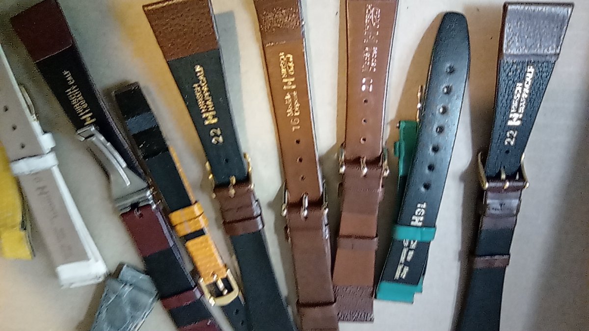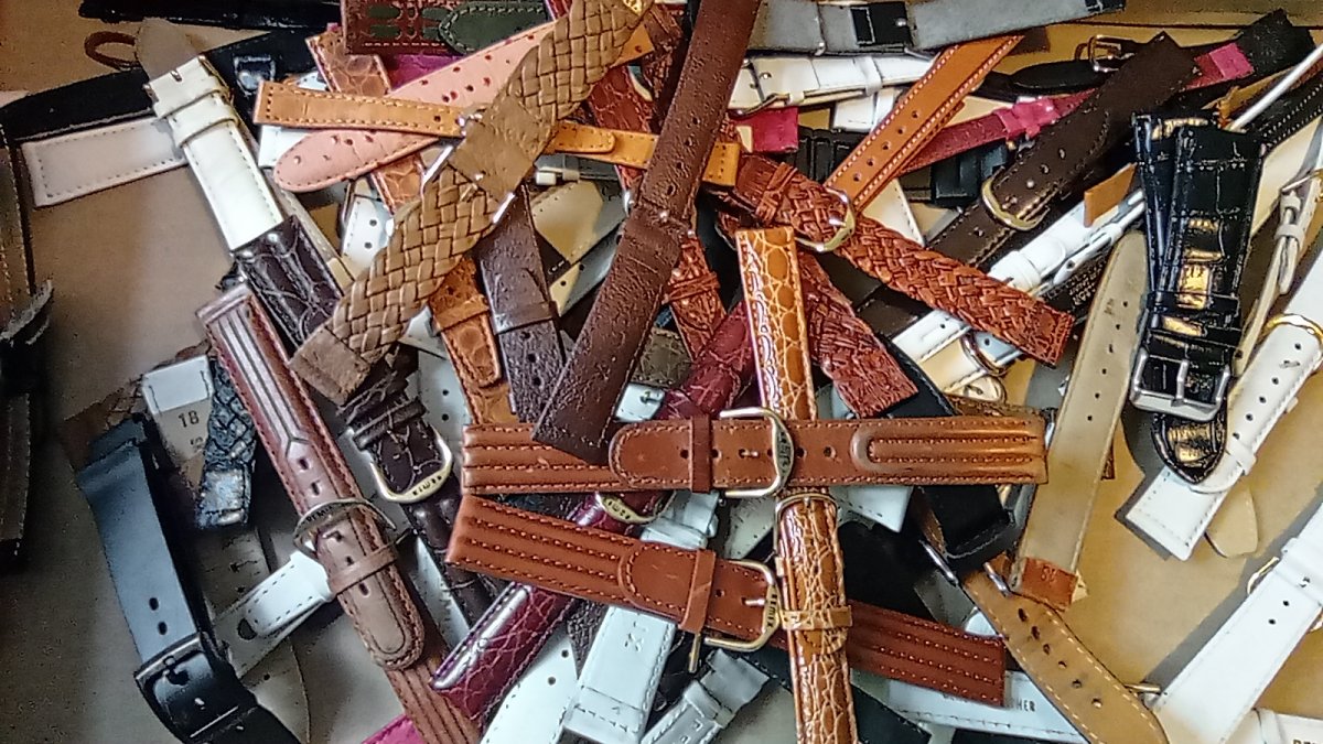 cca 90 kusů starých řemínků k hodinkám - z toho cca 17 značkové Hirsch