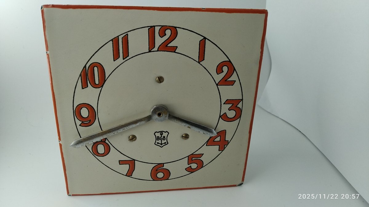 smaltované hodiny pravděpodobně Gustav Becker ,včetně patentové značky ,hodiny se zastavují ,velice pěkný stav