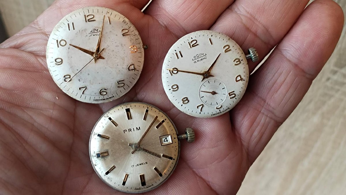 Součástky Prim na opravu Atd ,Stav viz foto.Hodinky jsou vyřazené z mé osobní sbírky,zboží je použito a tudíž bez záruky.Kupujete to co je na fotu.Snažil jsem se to nafotit v realnem stavu-viz foto.Odesílém řádně zabaleno a pojištěné.Poštuvné dle ceníku ČP.ZÁSILKOVNA.