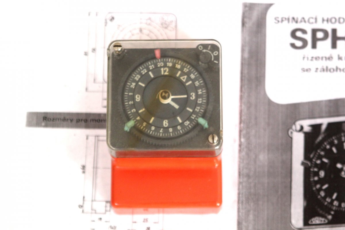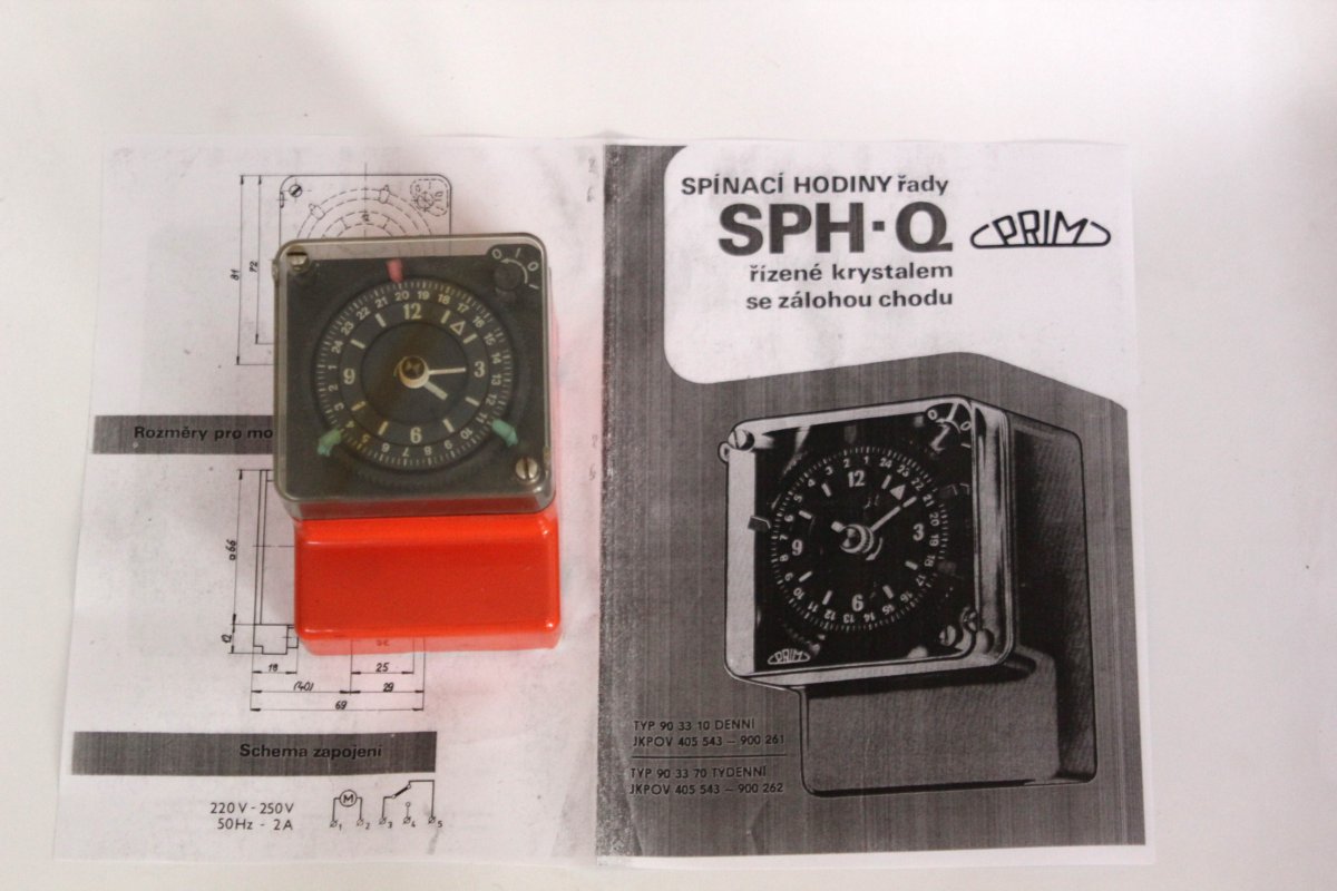 spínací hodiny Prim SPH-Q, stav nezkoušen, součástí je kopie návodu, rozměry 10x7x6,5cm