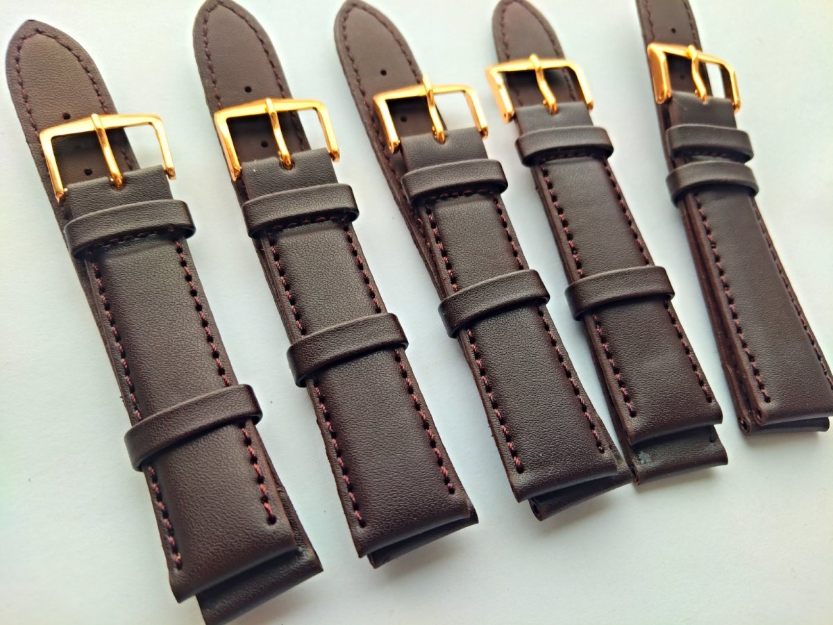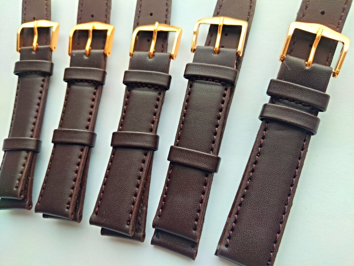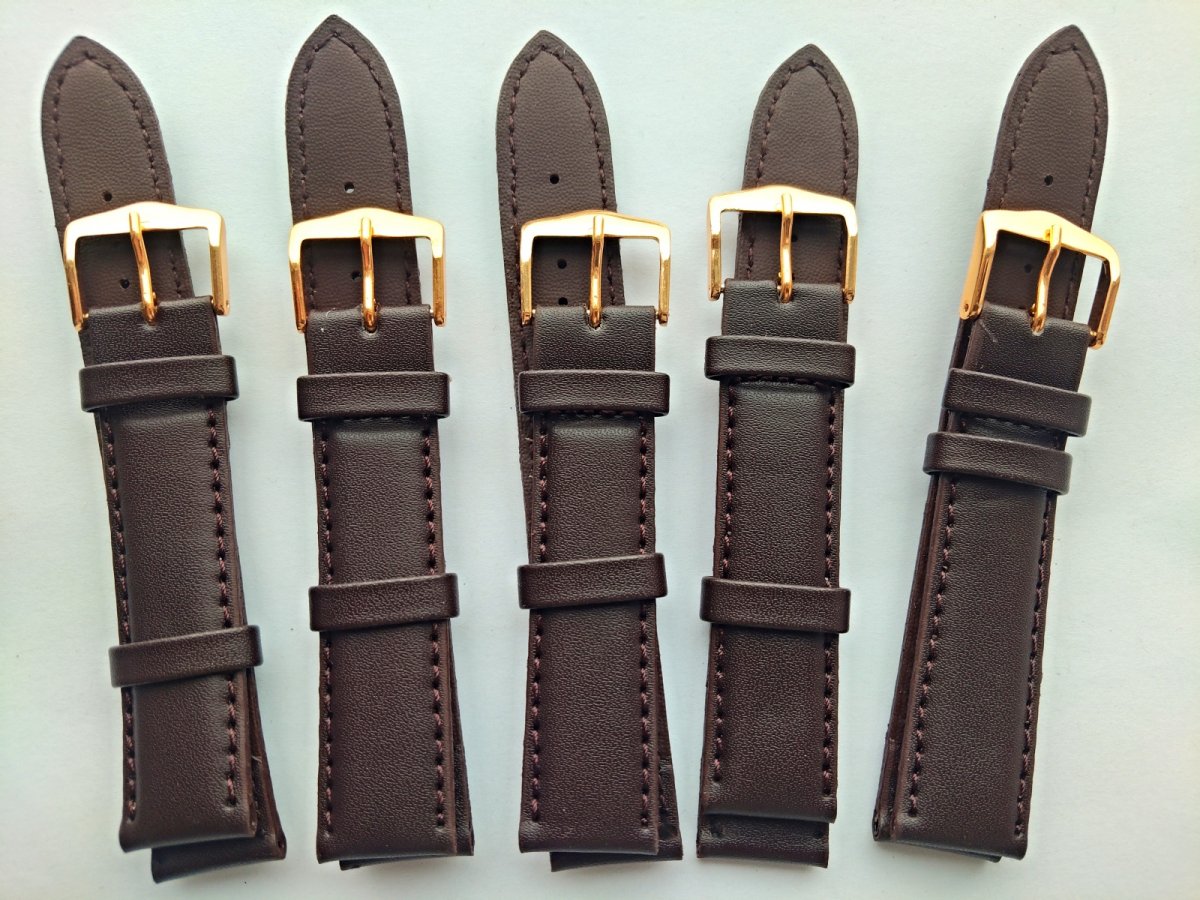tmavě hnědý kožený řemen 18mm se zlatavou sponou !!!
