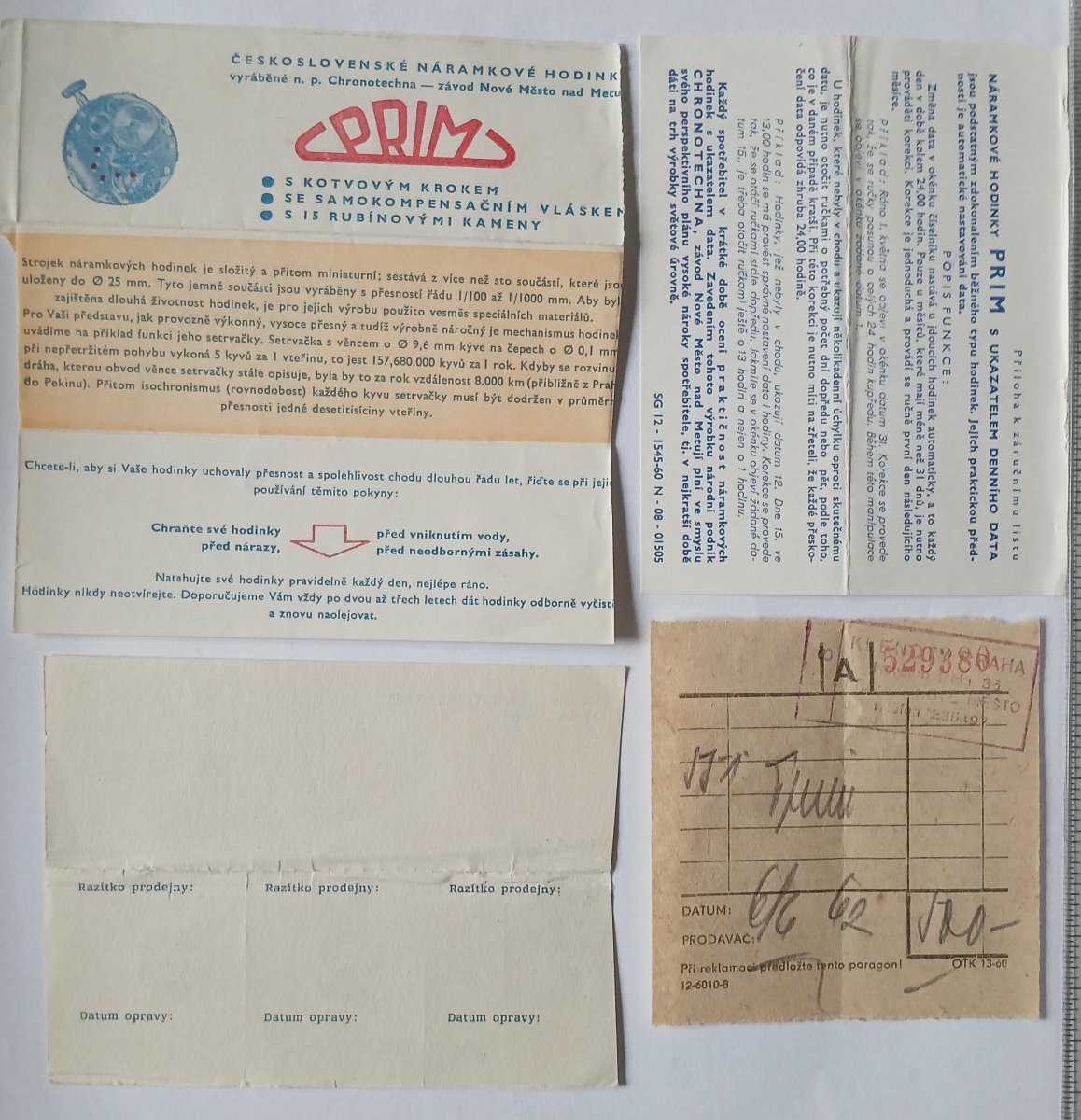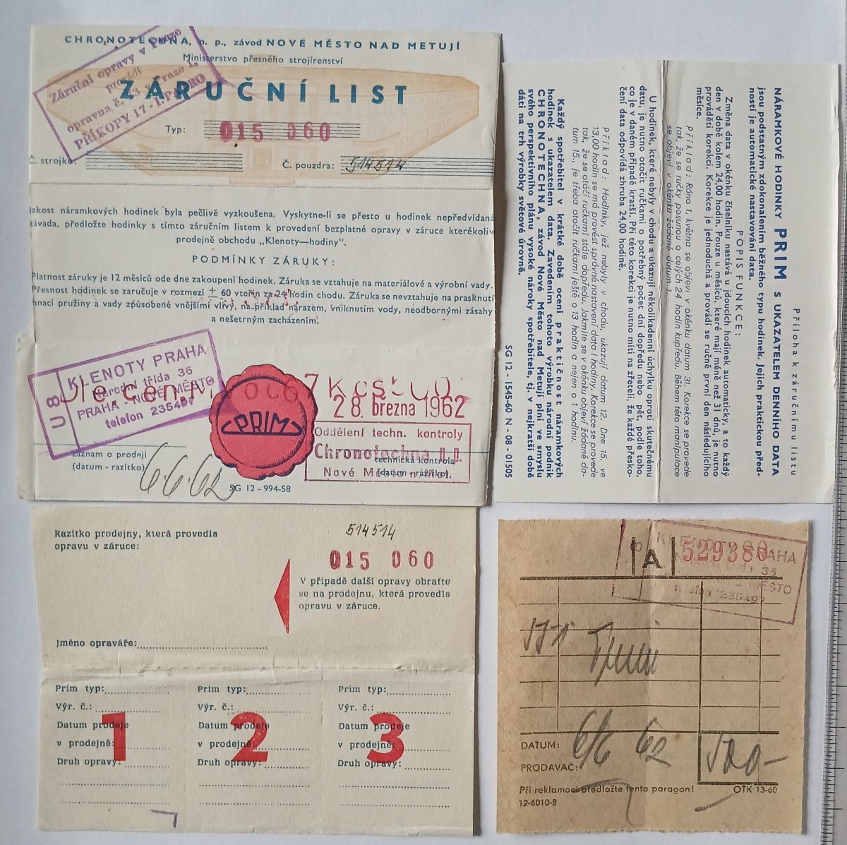 Záruční list k hodinkám PRIM typ 015 060