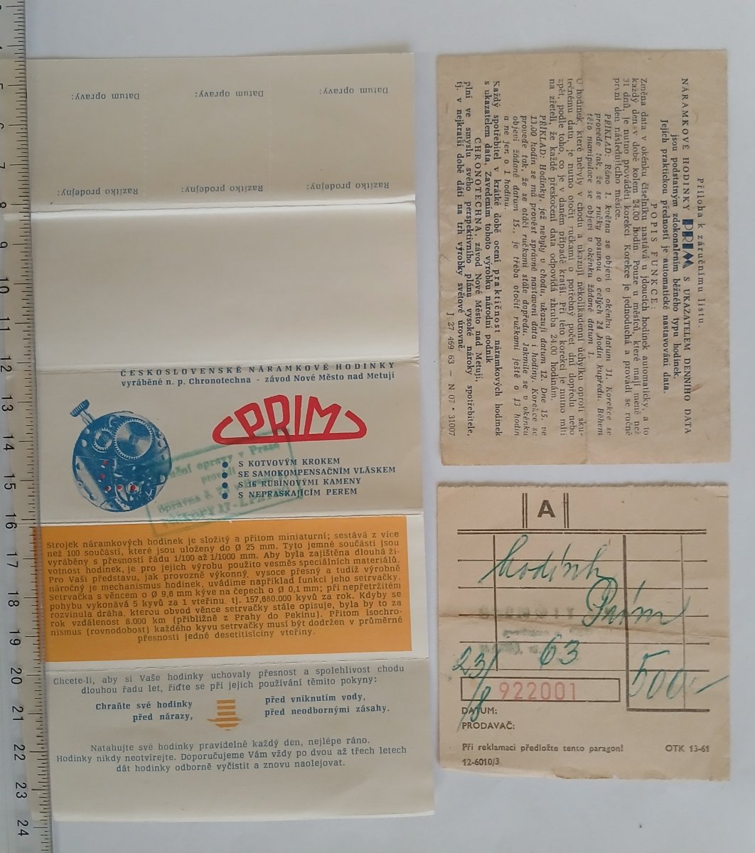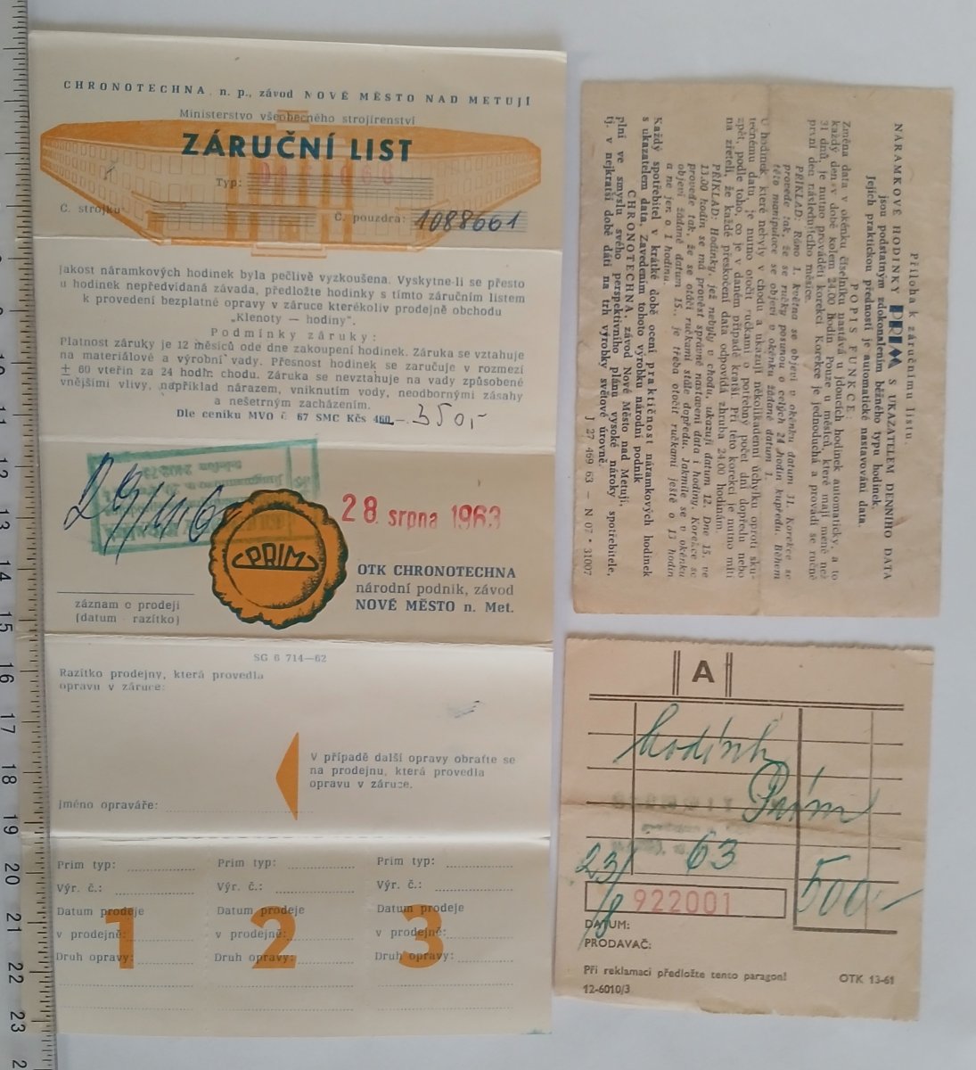 Záruční list 015 066 včetně přílohy k ZL a prodejky z 28.srpna 1963