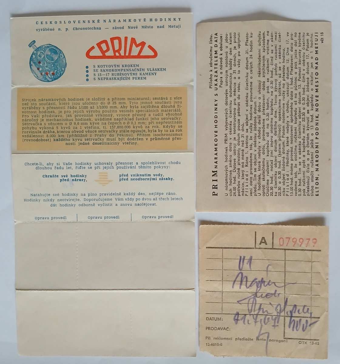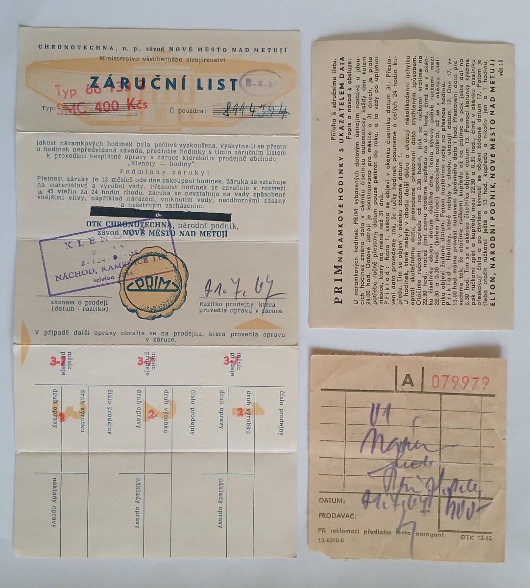 Záruční list na hodinky PRIM typ 66 133 3 z 21.7.1967