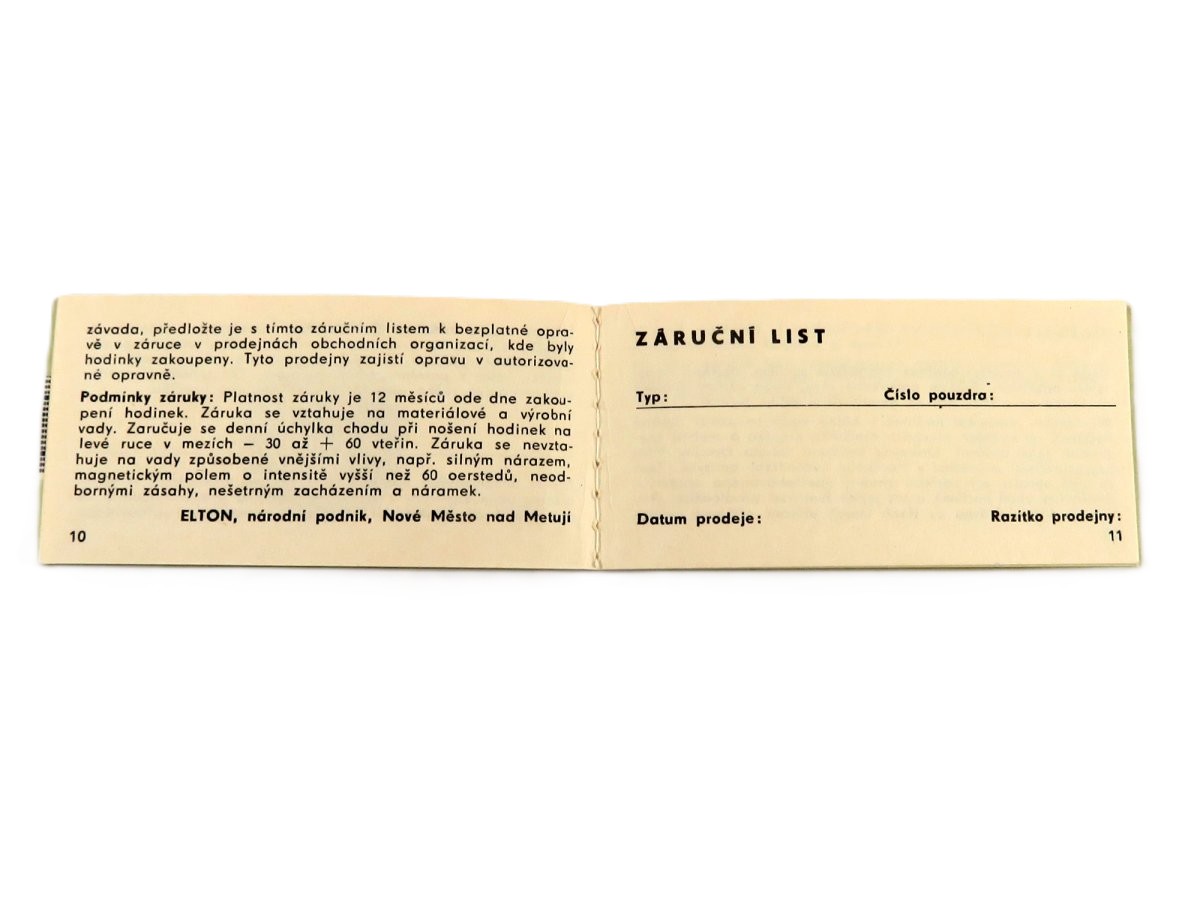 Záruční list k hodinkám PRIM SPORT 1. generace.