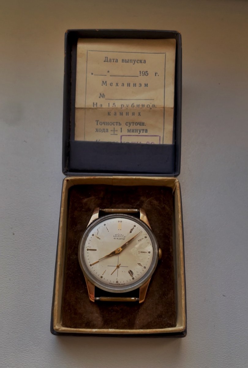 Nabízím k prodeji extrémně raritní kus z historie československé hodinářské výroby – PRIM z roku 1959, v zlatém provedení punc 585. Vyrobeno bylo pouze 500ks, jedná se tedy o sběratelsky mimořádně ceněný model.